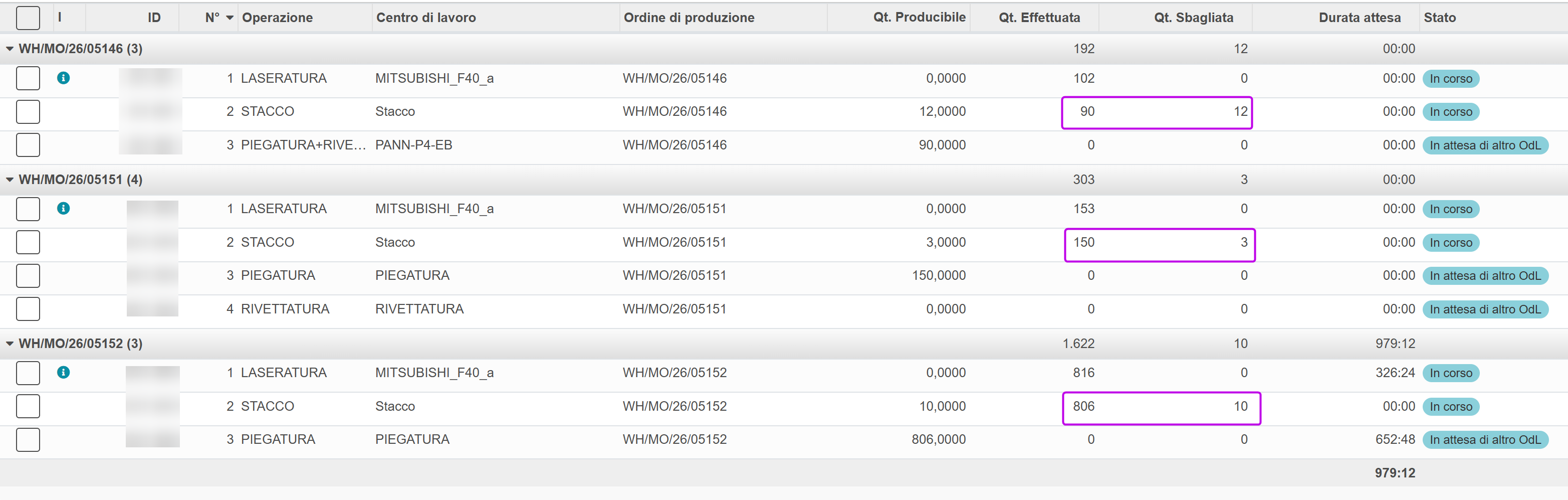 Dopo la conferma, le fasi registreranno le nuove quantità validate:
